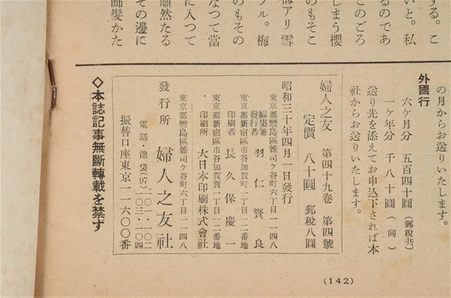 昭和30年4月1日婦人之友社發行《婦人之友》第49卷第4號