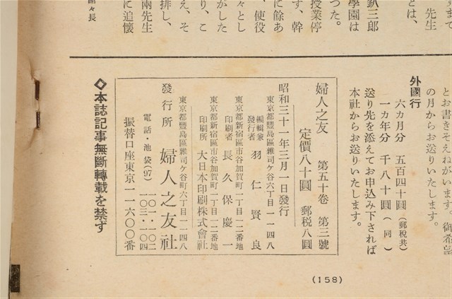 昭和31年3月1日婦人之友社發行《婦人之友》第50卷第3號