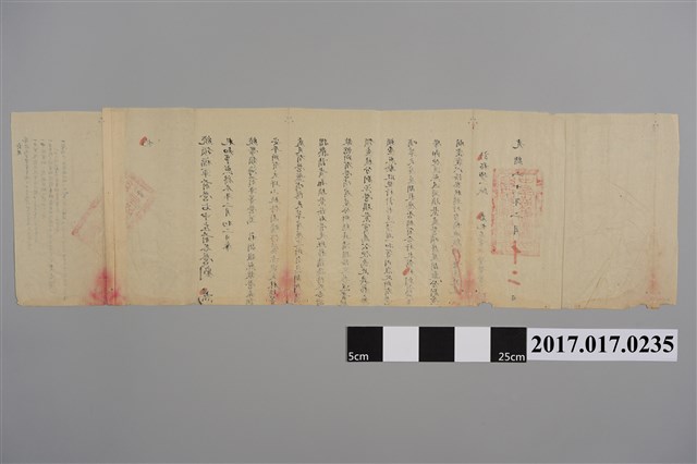 此文件為光緒21年2月12日〈統領福軍前營右中左前各營劉為奏請查明清點營哨房屋一事〉,內容為奏請清點安平所有大平山、桃仔園、蠔仔寮、赤嵌、大林埔等處之營哨房屋之事。關於奏摺制度,奏摺之具奏人可派遣專人或通過驛站直接送入內宮,由皇帝親自折閱並用朱筆批示,然後再交來人或通過驛站發回原奏人遵行,保密性與時效性極佳,因此在清代獲得普遍推廣使用。奏摺按其內容可分為奏事折、奏安折、謝恩折及賀折四類,其公文程式各有不同。最初主要用作請安致賀,以後逐漸用作奏事、謝恩,尤以奏事折為最多。它在康熙時及雍正初年,原無一定規則與程式,一直到雍正、乾隆時期,奏摺才成為國家正式官文書,並形成一套嚴格的製度。首先是只有高級官員,如文官的京官三四品京堂以上或翰詹科道官員;地方官按察使以上或負有特殊使命的欽差官員;武官須總兵以上等員始有資格用奏摺奏事。其次在公文程式、運轉關係以及繕寫的字體等方面,也都有繁瑣的規定,違者就會受到處分。
