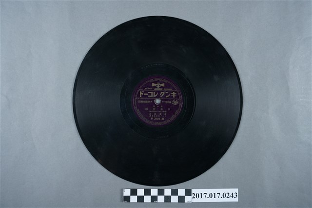 本文件為10吋蟲膠唱片《日本音頭》,由寶麗多唱片公司發行之雙面蟲膠,正反收錄曲目為日本音頭,皆由淺草吉奴、權藤圓立演唱,和洋合奏團伴奏,內容為西條十八詩,上頭印有寶麗多唱片公司商標圖樣。1907年日美兩方合資成立「日本蓄音器製造株式會社」為日本第一家自製留聲機和唱片的公司。1910年改名為「日本蓄音器商會」,並在同年11月派駐臺機關「日蓄臺北出張所」,開始拓展其在臺業務。然而臺灣黑膠唱片的普及則要到1925年以後,當時為了降低唱片的售價,而採用成本較低的上漆紙板,也一般民眾也負擔得起,此後唱片就逐漸流行起來。隨日蓄在臺灣的「出張所」成立後,日本國內各家唱片公司也紛紛前來臺灣成立「分店」,如鶴標、新高、文聲、羊標、金鳥、東洋、駱駝、飛鷹…等,所發行的唱片以歌仔戲、歌仔曲、山歌、採茶歌為主,展開了臺灣音樂唱片錄製的工作。