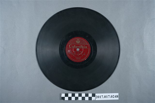 本文件為蟲膠唱片《蘇州の夜》(《電影蘇州的夜主題曲:蘇州的夜》),由古倫美亞唱片公司發行之雙面蟲膠,雙面各收錄曲目松竹映畫蘇州之夜之主題曲蘇州の夜、乙女の祈り,皆由李香蘭演唱。上頭印有古倫美亞唱片公司音符商標圖樣。1907年日美兩方合資成立「日本蓄音器製造株式會社」為日本第一家自製留聲機和唱片的公司。1910年改名為「日本蓄音器商會」,並在同年11月派駐臺機關「日蓄臺北出張所」,開始拓展其在臺業務。然而臺灣黑膠唱片的普及則要到1925年以後,當時為了降低唱片的售價,而採用成本較低的上漆紙板,也一般民眾也負擔得起,此後唱片就逐漸流行起來。隨日蓄在臺灣的「出張所」成立後,日本國內各家唱片公司也紛紛前來臺灣成立「分店」,如鶴標、新高、文聲、羊標、金鳥、東洋、駱駝、飛鷹…等,所發行的唱片以歌仔戲、歌仔曲、山歌、採茶歌為主,展開了臺灣音樂唱片錄製的工作。