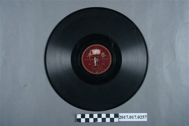 本文件為蟲膠唱片《放風吹》,由泰平唱片公司發行之雙面蟲膠唱片,正反收錄曲目為童謠天黑黑、放風吹,皆由鶯兒演唱,泰平管弦樂團伴奏。上頭印有泰平唱片商標貝殼星圖樣。1907年日美兩方合資成立「日本蓄音器製造株式會社」為日本第一家自製留聲機和唱片的公司。1910年改名為「日本蓄音器商會」,並在同年11月派駐臺機關「日蓄臺北出張所」,開始拓展其在臺業務。然而臺灣黑膠唱片的普及則要到1925年以後,當時為了降低唱片的售價,而採用成本較低的上漆紙板,也一般民眾也負擔得起,此後唱片就逐漸流行起來。隨日蓄在臺灣的「出張所」成立後,日本國內各家唱片公司也紛紛前來臺灣成立「分店」,如鶴標、新高、文聲、羊標、金鳥、東洋、駱駝、飛鷹…等,所發行的唱片以歌仔戲、歌仔曲、山歌、採茶歌為主,展開了臺灣音樂唱片錄製的工作。