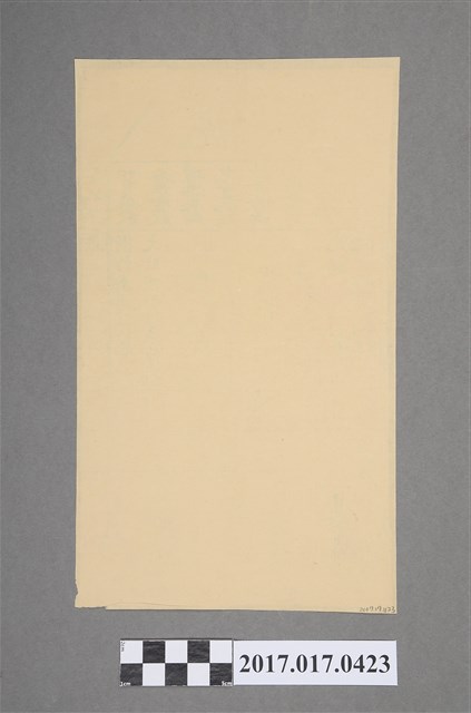 此份文物為清領時期的文物,是一張長方形泛黃的紙張,狀態上有些破損,部分文字不太清楚,應為官府所頒發的執照。上面寫著「執照,如有數銀,名姓塗改,增添及錯,完重完該,納戶於兩,日內稟請,更正毋得,延隱自悞。新竹縣正堂范,北一,大肚庄小租戶曾永賢、曾文彩,即完納光緒貳拾年分,上忙平餘、正耗、補水銀玖錢柒分肆厘參毛,帶捐城工銀O分,共銀OOO兩,光緒貳拾年四月日給下田分,縣正堂擊字第八十九號。」字的顏色可分為三種有藍、黑、紅,並於上執照上面蓋有官印。小租是與大租相對的名稱,臺灣土地有一田二主的現象,即是同一土地有墾戶(業主)向佃戶收取租穀,亦有佃戶向現耕佃人收取租穀,墾戶所收取者為大租,佃戶收取者為小租。小租額每甲高達5、60石者。執照有名詞與動詞兩種用法。當動詞時,是收取單據並存為證明。當名詞時有廣狹二義,廣義的執照是大租戶像小租戶收取大租時給付的執照,類似收據。狹義的執照,是官府給的權利證明,例如墾照、墾單、諭單均稱為執照,又例如土地原始契字遺失時,發給之替代證明文件,亦稱為執照。