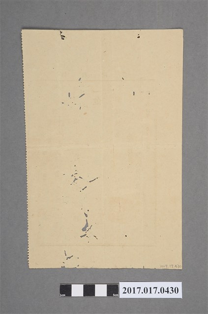 此份文物為日治時期的文物,是一張長方形泛黃的紙張,保存狀態良好,為官府所頒發的證書。上面寫著「領收證書,第十二號,明治卅四年度臺灣地方稅,第十區管內樹杞林辯九贛頭庄曾彪,地方稅家稅家稅,全期分,一金四円八拾錢,右領收候也,新竹辨務署長,臺北縣辨務署長里見義正,明治三十四年。」上面蓋有臺北縣官府的印鑑。地方稅財源徵收法源為明治31年(1898)律令第17號「臺灣地方稅規則」,在總督府支出項目上被稱為「地方費」。臺灣地方稅規則的稅收項目有「地租附加稅」、「家稅」、「營業稅」與「雜種稅」等四種項目‧除了本稅以外,地方費尚有來自總督府特別會計的補助金。在支出方面,臺灣地方稅規第六條將地方稅的用途明訂在十種項目。