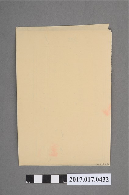 此文物為告知書,內容為「第十二區 第二一號 九贊?曾文彪 一金四拾九??厘 九月十日徐? 但沙坑抓出所修繕費 右明洽?年六月五日限當還?入?? 明治?年五月二日」告知書上有四個印章,其中三個已看不清楚內容,第四個一個印章上刻著「新竹廳第十二區庄長印」。