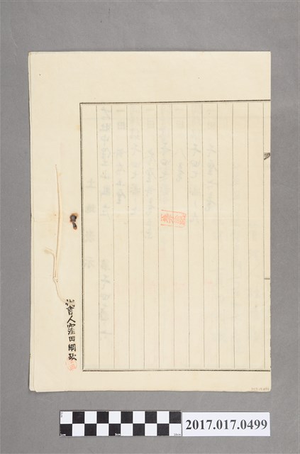 此為明治四十四年二月四日業主名義表示變更及管理追加登記申請書,其申請原因為明治三十九年六月二十六日申請登記錯誤,因而於明治四十四年二月四日再次申請業主名義表示變更及管理追加登記,登記稅為四十五錢,業主為林本榮,管理人為林友梅,代理人為窪田綱政。