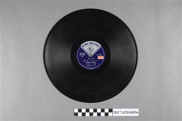 「キング」(大王,或國王)唱片公司,日語歌曲唱片。〈タロコ月夜〉時雨音羽作詞,三界稔編曲,林伊佐緒演唱。〈タツキリ小唄〉時雨音羽作詞、大村能章編曲,橫山郁子演唱。キソゲ管絃樂團伴奏。