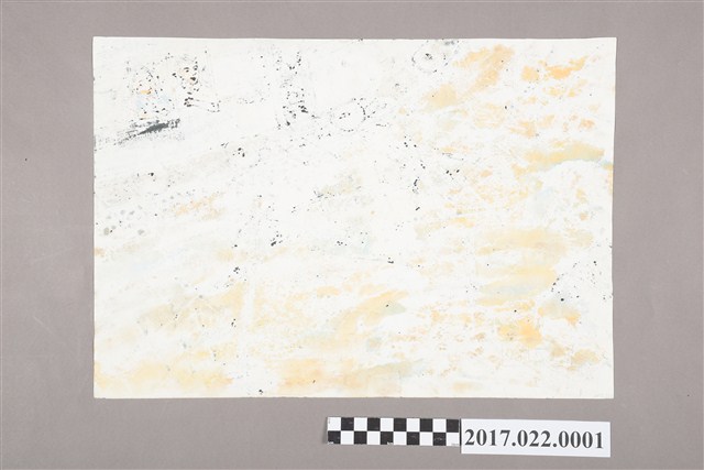 1.謝招治《八七水災後臺北高雄火車之旅》之二,與館藏號2015.044.0186為一組,橫幅、水彩畫,畫作左下角落款有「謝招治」字樣,背面以鉛筆書寫有「N15.1」編號。