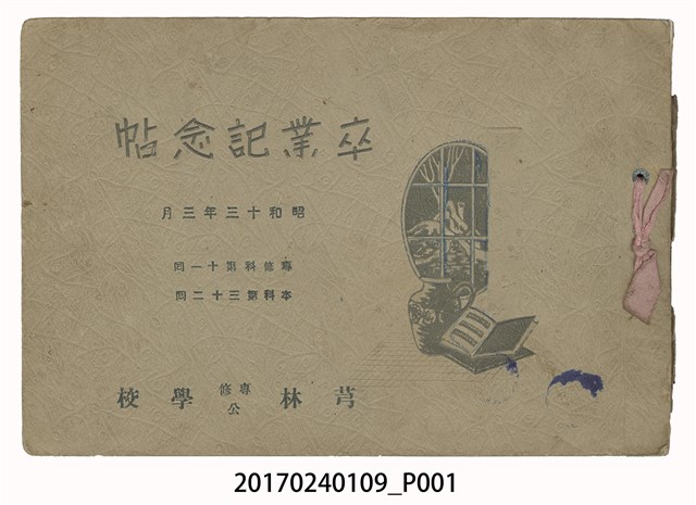 本文物為昭和13年3月專修科第11屆本科第32屆芎林專修公學校畢業紀念冊,內容記載該校的校歌、校旗及校徽、歷代校長名字,另外有開校紀念運動會舊照及各科班級畢業照。(撰稿人:曾國棟)