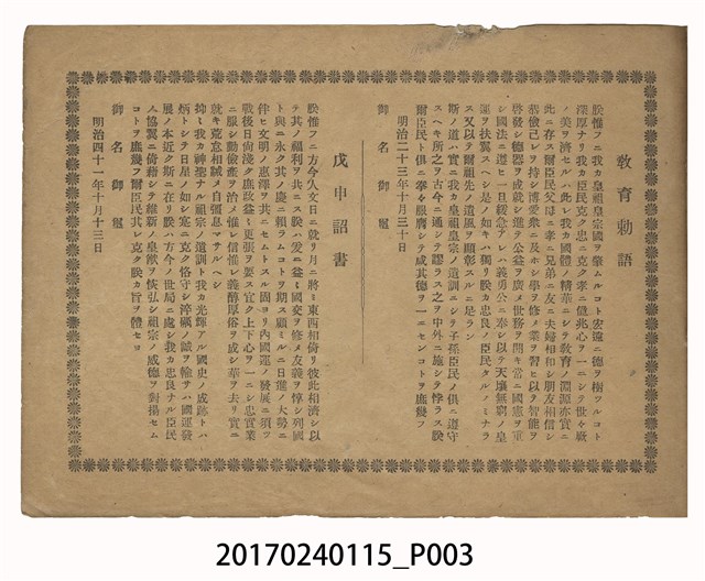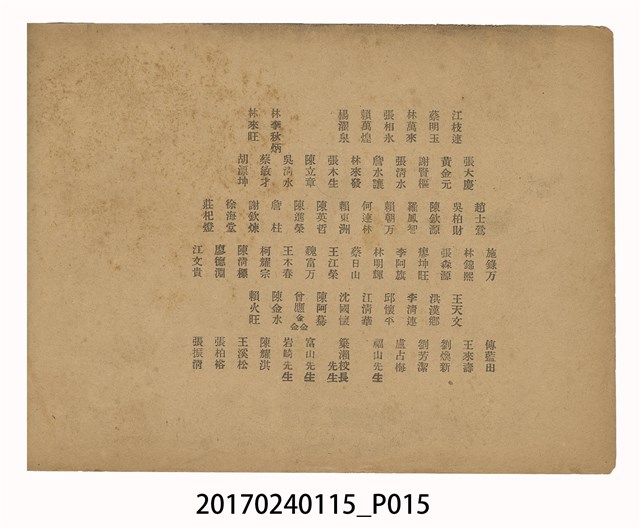 本文物為臺中市村上國民學校畢業紀念初等科第41回,高等科第19回相片集,村上國民學校為現今的臺中忠孝國民小學,內容記載該校的校歌、校旗及校徽,另外有運動會舊照及各科班級畢業照。(撰稿人:曾國棟)