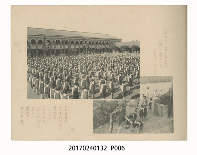 本文物為昭和15年3月臺北市大安公學校第6屆畢業紀念冊,大安公學校為現今的大安國小,內容記載有教育敕令、校歌等,另外還有老師及學生合照、活動合照等。(撰稿人:曾國棟)