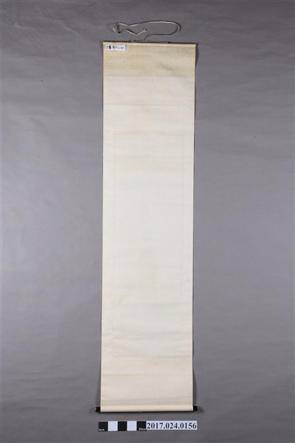 本文物為明治大帝卷軸掛畫,掛畫上方有象徵日本皇室的金貼菊花,正中下方有明治天皇的畫像。左下角寫有徵○藤原宗墨○浴僅書並蓋有兩只印章。(撰稿人:曾國棟)