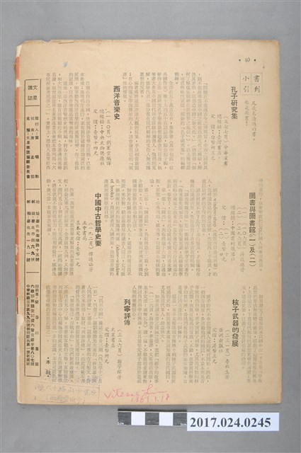 本文物為民國50年(1961年)1月1日出版的文星雜誌第七卷第三期,為總發行的39期,其封面人物為以放射性元素進行年代判定,發展出碳-14計年法的李貝(Willard F. Libby),其內容除封面人物介紹外,也有國外的藝文欣賞、科學新知、思想、小篇詩集等內容。 文星雜誌為民國46年(1957年)11月5日,由文星書店所發行,發行人為葉明勳,社長則為文星書店創辦人蕭孟能,其發刊詞〈不按牌理出牌〉也展現其理念為「不按常規辦這份雜誌」,其內容以西洋文學翻譯、科普知識、國外思想、學校的介