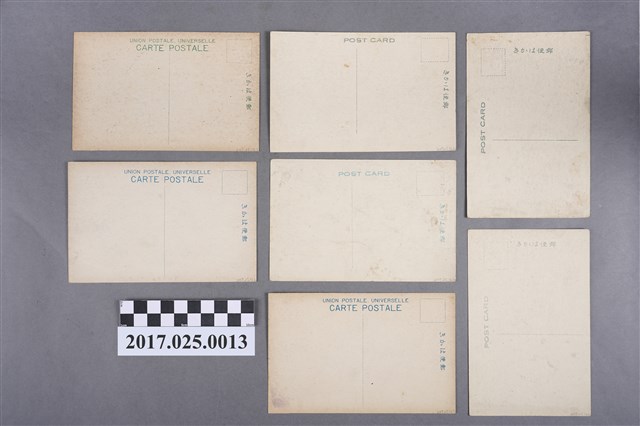 1. 本文物為日治原住民黑白寫真明信片,共7張,柯羅版印刷,皆分為正面與背面,正面的部分,主題皆以昭和初期之原住民為主,分別是:烏來瀑布、入烏 台車道、烏來蕃女織布、泰雅族狩獵青年、盛裝的阿美族、盛裝阿美族蕃丁、盛裝的阿美族的隊伍。從拍攝的內容中可以見得當時的日本人對於原住民的好奇,以及想透過了解他們達到統治透徹的目的。背面的格式則皆為寫有郵政明信片和POST CARD等明信片的標記,還有貼郵票的方框。
