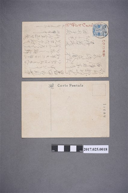 1. 本文物共有四張寫真明信片,皆有正反兩面,正面的部分,其中兩張以基隆為主題,分別是:基隆港市街全景、基隆港岸壁,攝影內容以港口和港口邊的市街為主;另外兩張以台南為主題,分別是:臺南州廳、臺南步兵第二聯隊正門圖,攝影主題則是以官方治理的成果為主。四張明信片皆為大正時期,柯羅版印刷。而反面的部分,其格式皆寫有郵政明信片和CARTE POSTALE POST CARD POSTKARTE CARTOLINA POSTALE OTKPBITOE HMCDMO等明信片的標記,還有貼郵票的方框,特別的是基隆港市街全景明信片背面有許多的文字書寫。