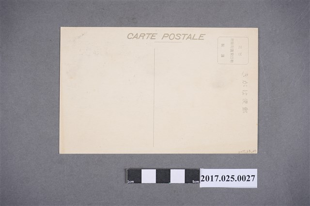 此文物為一日治時期黑白印刷的明信片,為東本願寺臺北別院側面建築外觀,在明信片左下角也註明了此張照片為東本願寺臺北別院側面,而背面郵票框處,則寫有「台北朝日寫真印刷所 謹製」的字樣。