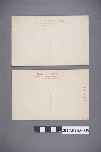本文物為昭和時期「臺南市街」黑白明信片套組,柯羅版印刷,共計兩枚,分別為「臺南市郵便局」及「臺南市公館臺南醫院及四春園遠望」。臺南市區因日治時期「市區改正」計畫而街道劃分有所不同。
