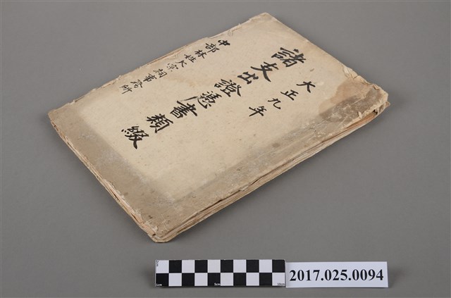 本文物為大正9年(1920年)中部林姓大宗祠事務所諸支出證憑書類,內容包含各式宗祠所使用的領收證、收據與支出說明、借據…等。