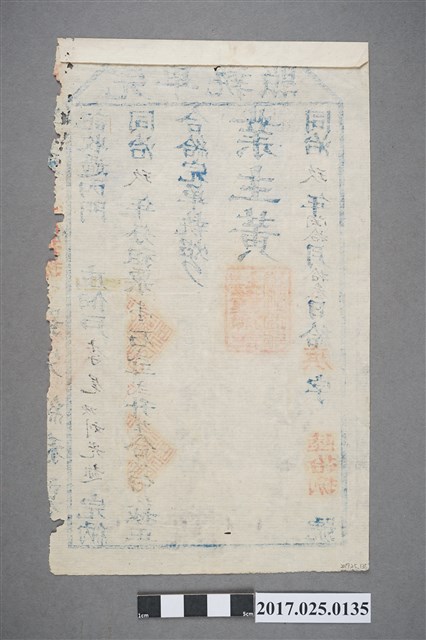 本文物為內門庄電戶李尾承頂劉光趙完單執照,內容記錄內門地區的庄佃戶李尾承頂劉光趙之土地,完納同治9年(1870年)潤10月13日之年份租粟1石2斗3升4合9勺9撮整,合給完單執炤。業主為黃瀛記。