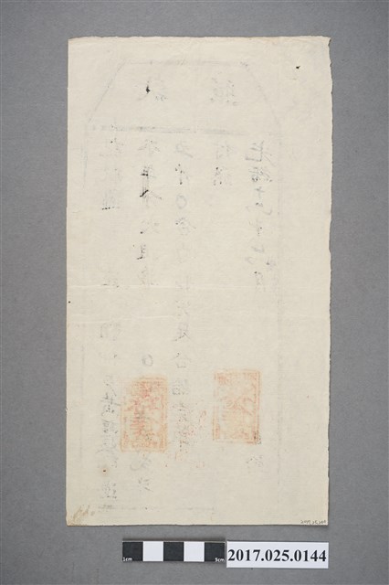 本文物為黃謳娘執照,內容記錄庄佃戶黃謳娘納過光緒12年(1886年)之2月大租粟5石2斗5升整,合給完單付執為炤。業主為林集萬。