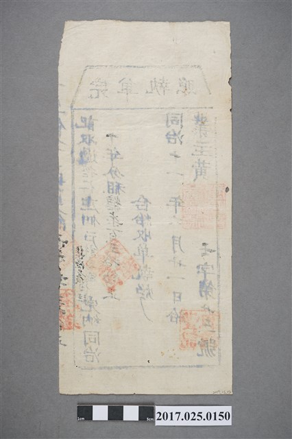 本文物為挖仔庄佃戶許高盛、集源廣佃弄雄完單執照,內容記錄挖仔庄佃戶許高盛、集源廣佃弄雄,繳納完同治10年(1871年)分租糖720觔整,合給收單執炤。立書時間為同治11年(1872年)6月21日,業主為黃樹德。