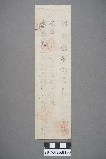本文物為暫記五甲尾庄佃宗兄來收單存照,內容記錄暫記五甲尾庄佃宗兄來,同治10年(1871年)12月租穀5斗5合整,立收單存照。業主為豐記租館。