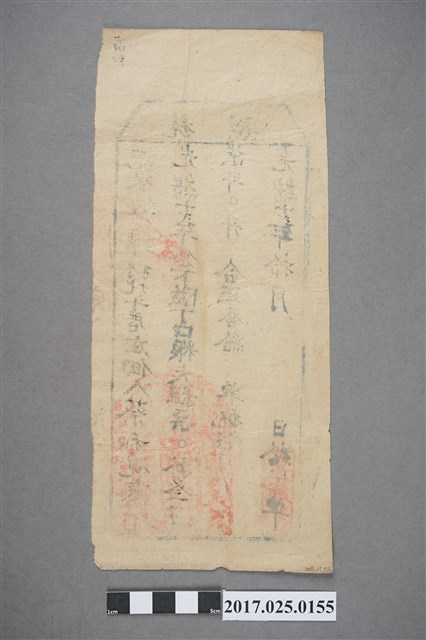 本文物為北斗厝庄佃人蔡和執照,內容記錄北斗厝庄佃人蔡和,光緒13年(1887年)10月分下隘丁口糧大租粟3石7斗整,合正合給收單執炤。