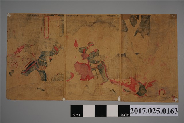 本文物為八卦山激戰占領圖,描繪日軍攻擊彰化八卦山,並與清朝官兵奮戰的英勇模樣。是明治29年(1896年)小森松次郎畫作印刷兼發行。