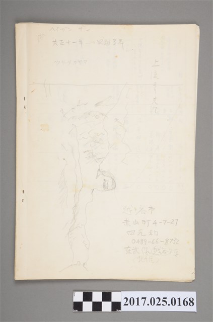 本文物為霧社事件發生時,當時住居於霧社地區的日本人名冊,書寫方向由右至左,為日文書寫,其中內容由上至下,分別為「本籍」、「勤務地住所」、「家中角色」、「氏名」、「生年月日」、「生死」等欄位,在最後更有一手繪圖及一張黑白照片。 霧社事件發生於昭和5年(1930年)10月27日,為霧社地區的賽德克族馬赫坡社(Mehebu)、荷歌社(Gungu)、吐囉灣社(Truwan)、斯固社(Suku)、羅多夫社(Drodux)、波阿崙社(Boarung)六社參與,其中以馬赫坡社的莫那魯道為首,在能高郡在霧社公學校運動會上時進行攻擊,事發後,日軍及警察部隊使用飛機、大砲、毒氣等武器,更利用其他部落(味方蕃)參與鎮壓,使得賽德克族人傷亡慘重,後參與攻擊的部落,其婦女位不拖累族人,多在樹林中自殺。事件結束後,經統計有644人,其中男性332人、女性312人,死於戰場或自殺而亡,日本將倖存者強制移至川中島(今清流部落)居住。