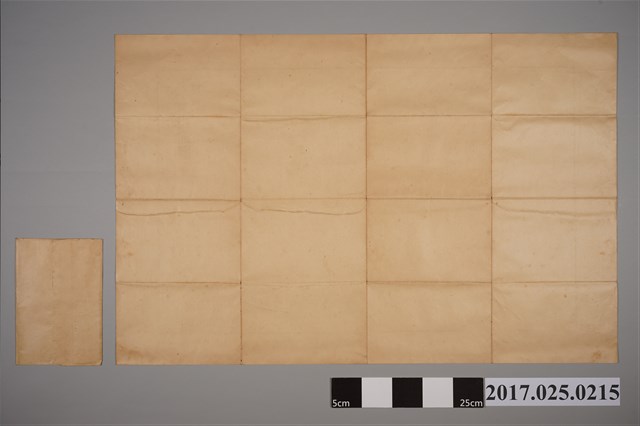 本文物為大阪吉岡寶文軒製〈改正實測中國全圖附朝鮮全圖〉地圖與封套,地圖測繪整個清帝國版圖以及日本國之行政區、交通要道、河流等。封套上說明製圖時間為明治27年(1894年)。