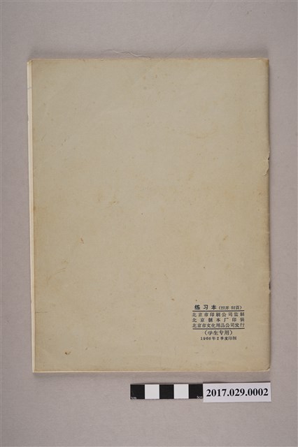 練習本為22開共52頁,1966年2季度印製,由北京市印刷公司監製、北京制本廠印裝、北京市文化用品公司發行,並標註為「學生專用」,封面繪有學生紅衛兵、錘頭鐮刀與槍桿的圖案。