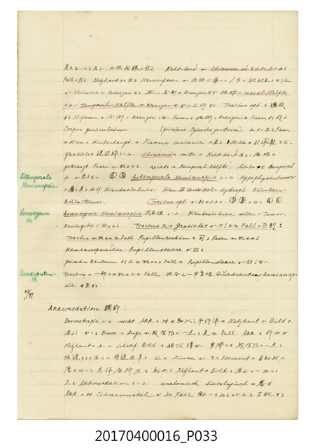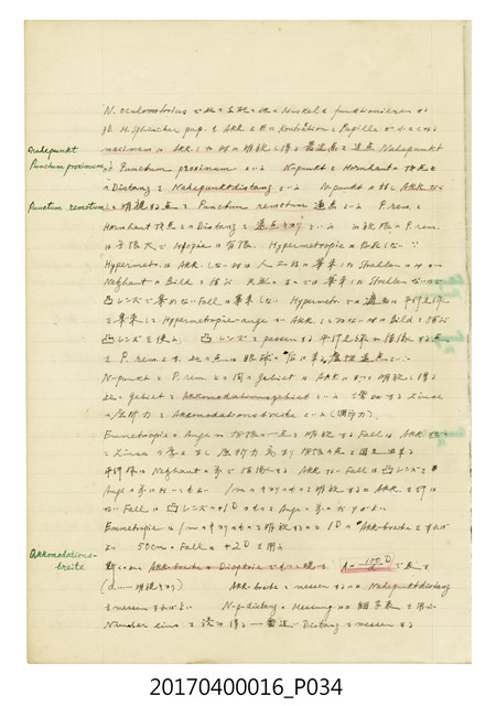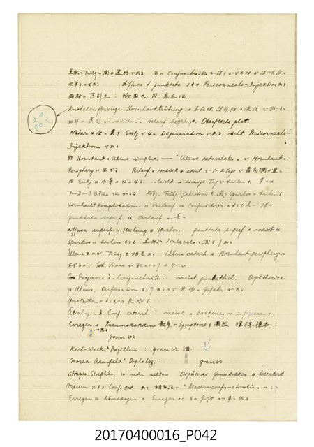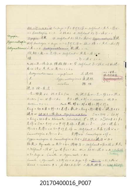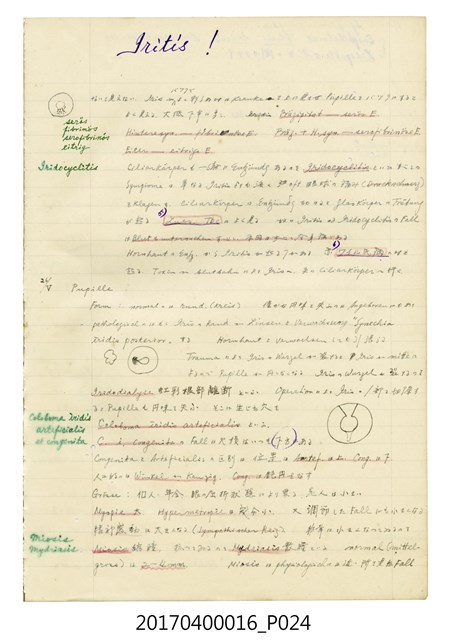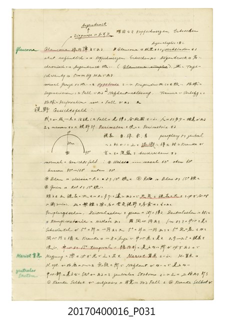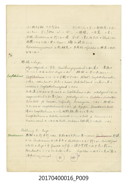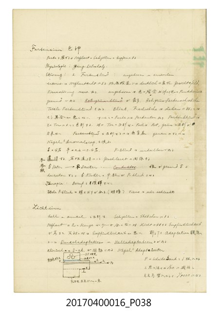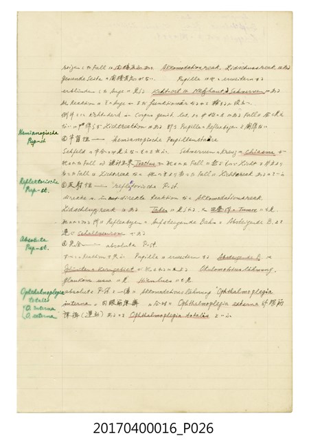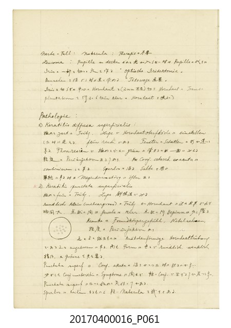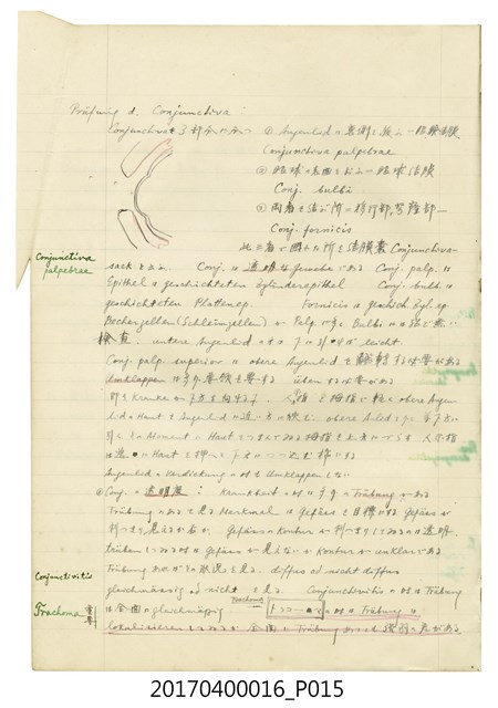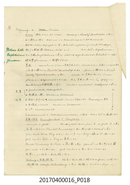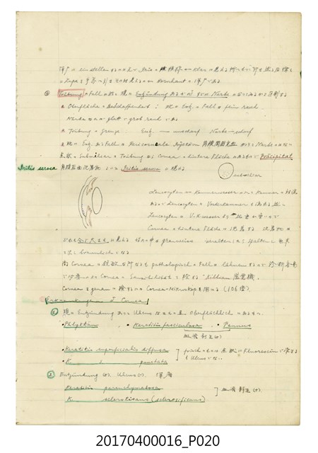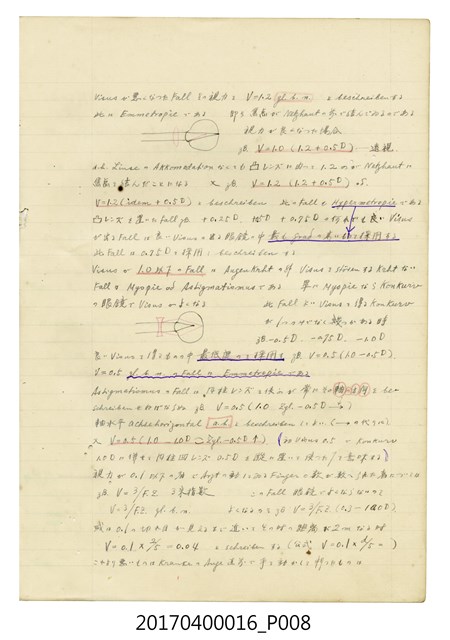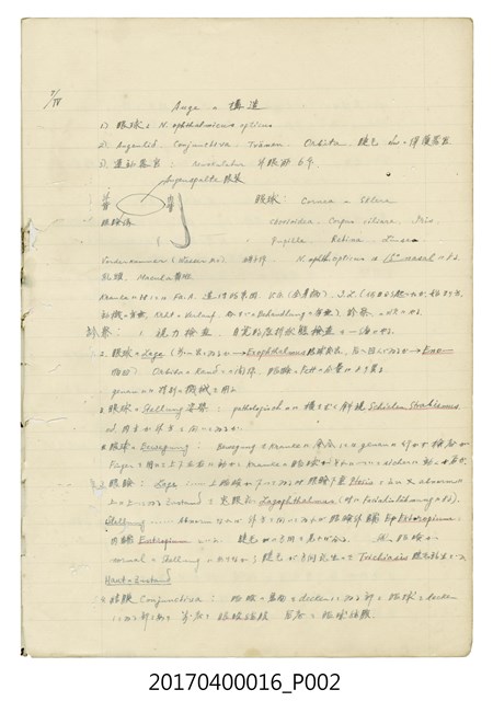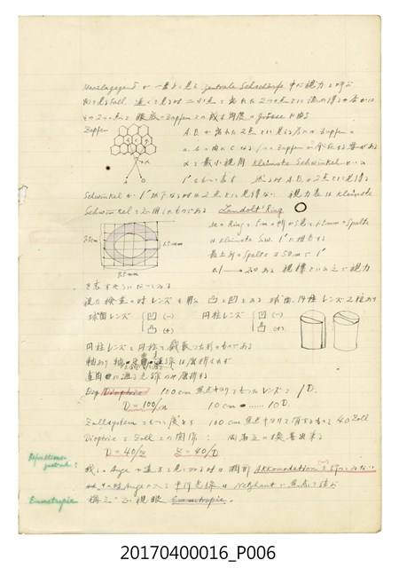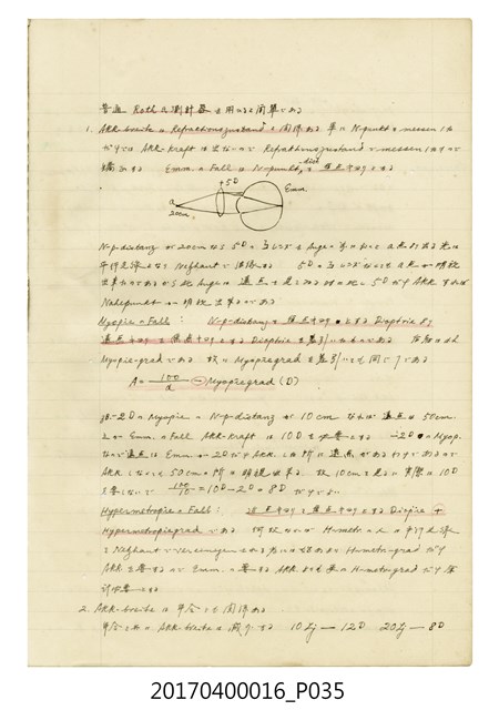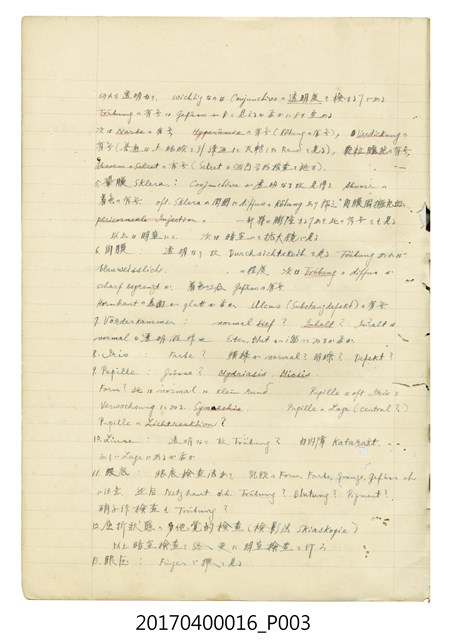 蘇百齡1921年生,新竹人。父蘇謙吉為什貨商,母蘇林氏足。四男,1928年就讀新竹公學校,1934年就讀新竹中學校,1940年就讀長崎醫科大學附屬藥學專門部,1942年畢業後就讀長崎醫科大學,1945年長崎遭受原子彈轟炸身亡。推測為就讀長崎醫科大學時筆記,內容為眼科。
