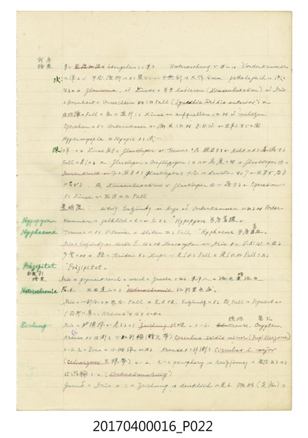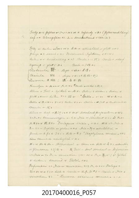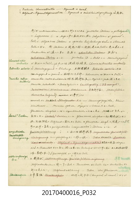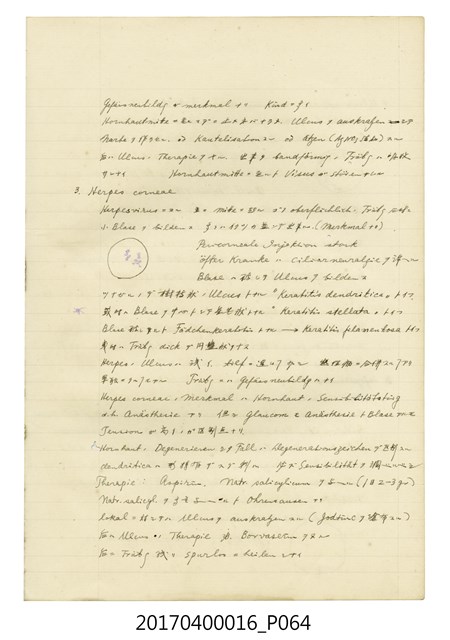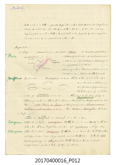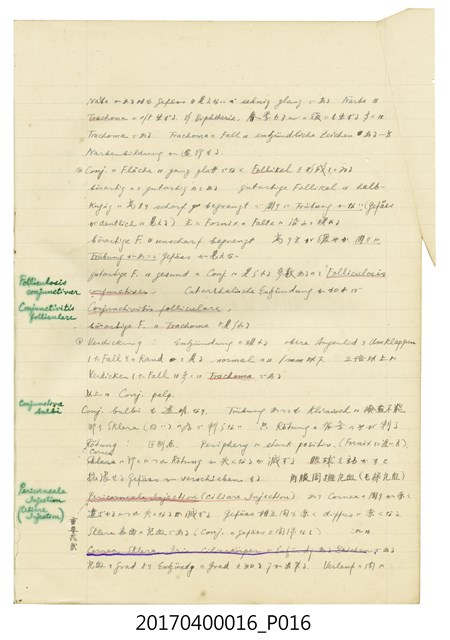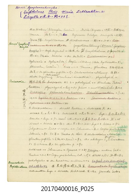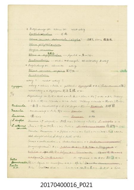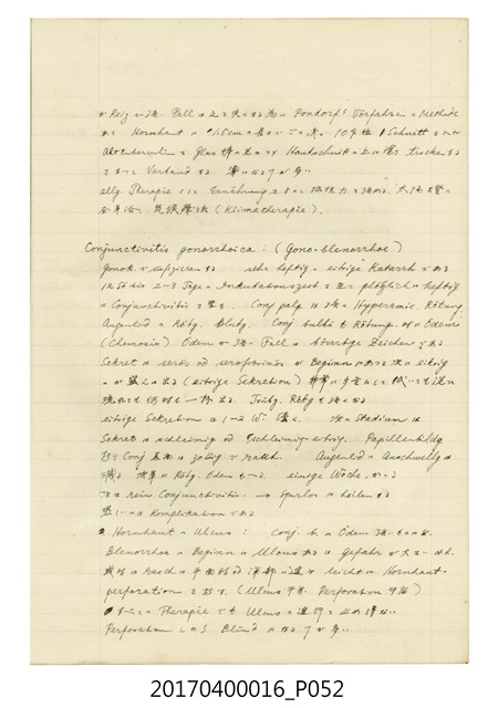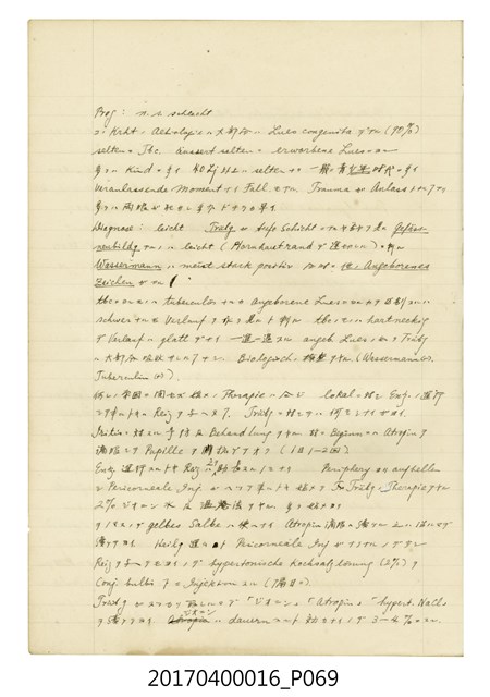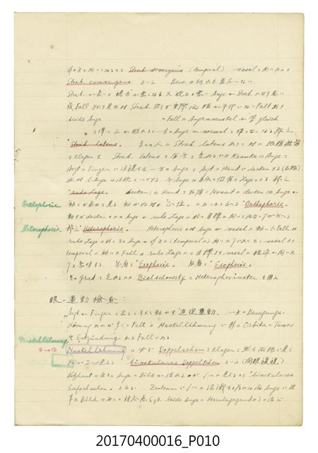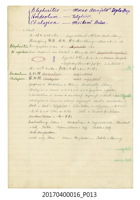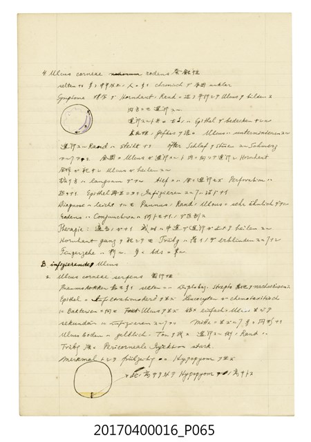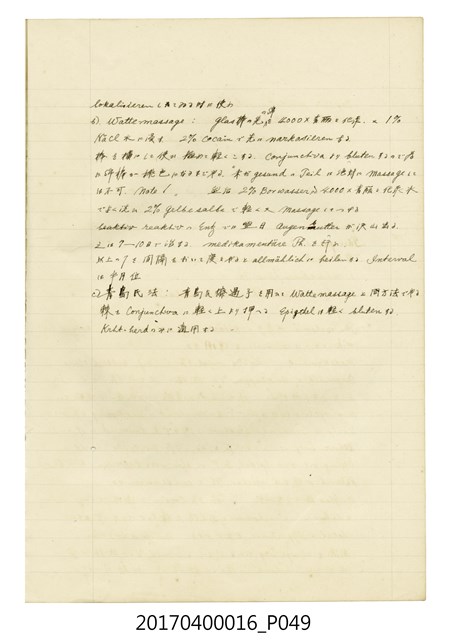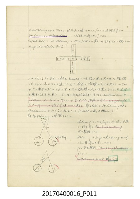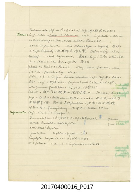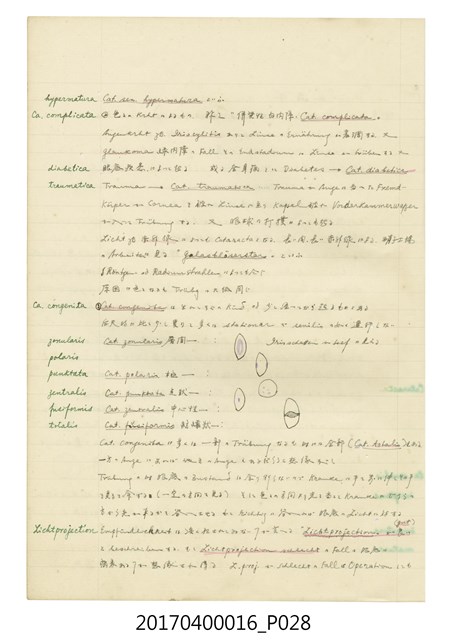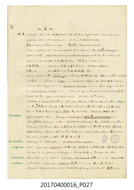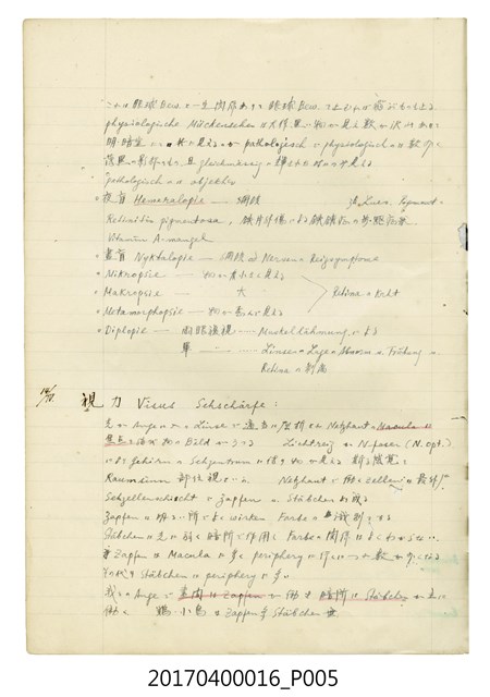蘇百齡1921年生,新竹人。父蘇謙吉為什貨商,母蘇林氏足。四男,1928年就讀新竹公學校,1934年就讀新竹中學校,1940年就讀長崎醫科大學附屬藥學專門部,1942年畢業後就讀長崎醫科大學,1945年長崎遭受原子彈轟炸身亡。推測為就讀長崎醫科大學時筆記,內容為眼科。