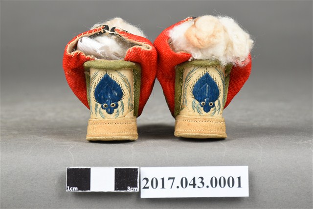 1.三寸金蓮,臺灣民俗文物辭典,http://dict.th.gov.tw/term/view/58(瀏覽日期:2021/08/03)。2.王瀞苡,2000。女紅——臺灣民間刺繡,頁:51-52。臺北:商周編輯顧問。