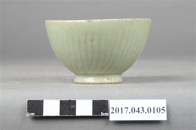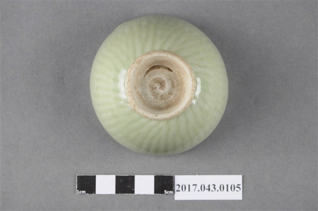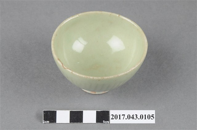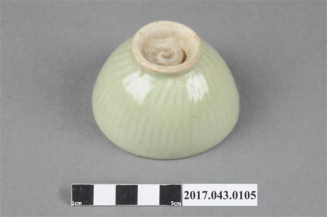 綠釉小圓杯以模具成形,高溫燒製,以覆鏇壓法製作,圓唇,平敞口,弧壁,深圓腹,杯底較窄,小圈足,足徑小於口徑的一半,圈足略高,圈足露胎,胎色白中帶黃,胎質細膩。圈足底有一旋渦狀紋路。全器施綠釉,呈色淺薄透亮。全器器表多有氣孔與少許雜質;圈足壁與口沿有縮釉現象,部分釉面有變色的狀況。小杯外壁素面無紋,僅以模具印出長條紋路,且紋路近圈足處做扭轉,使整體線條有旋轉下收般的視覺效果。全器除外壁模印長條紋路外,皆別無他飾,以釉色表現為主,整體簡潔素雅。
