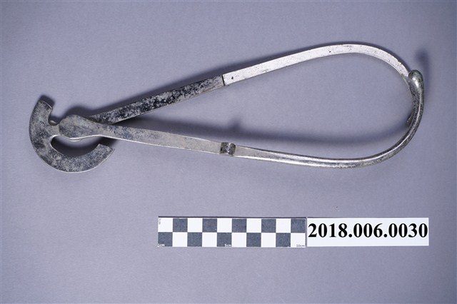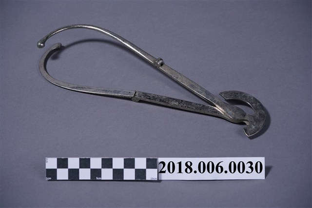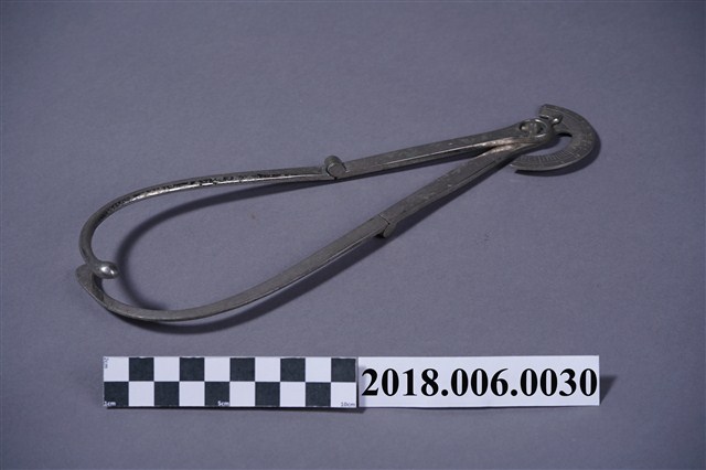 本文物為林龔添根助產士執業時所使用的醫療器材之骨盆計,其用途為評估孕婦骨盆大小及形狀,判斷胎兒能否經由產道自然分娩。此骨盆計材質為鋁合金,其表面滿布因氧化而形成的白色斑點,外觀保持完整;此骨盆計上端有半圓形刻度環,刻度以5毫米為單位。
