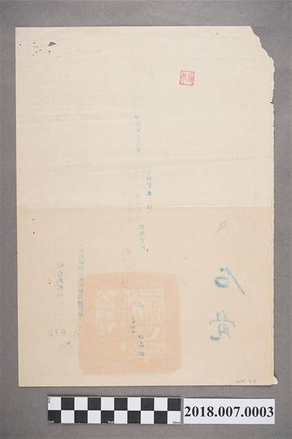 本件為中華民國62年2月19日(1973)銓敘部通知,文號62臺為甄四字第01872號給文鍵,為文鍵由行政院主計處任用至臺灣省臺中市立第二國民中學主計室主任之一案,經銓敘部審定後由部長石覺署名用印核發。文件左側有虛線鋸齒狀裁剪痕跡,且右上側註明此為第一聯送送審人,推測應為一式兩份。物件由捐贈者摺疊蒐藏,並與他件一同放在銓敘部公文信封內。