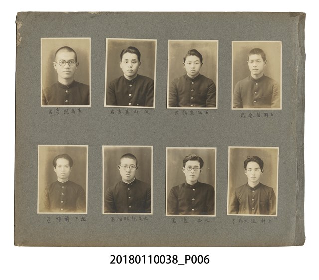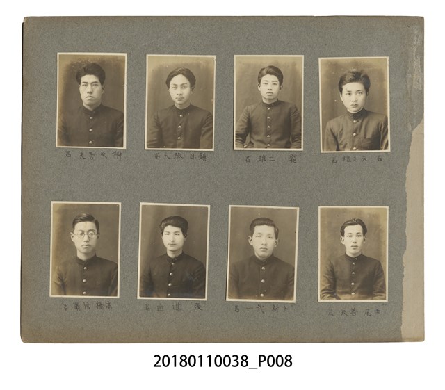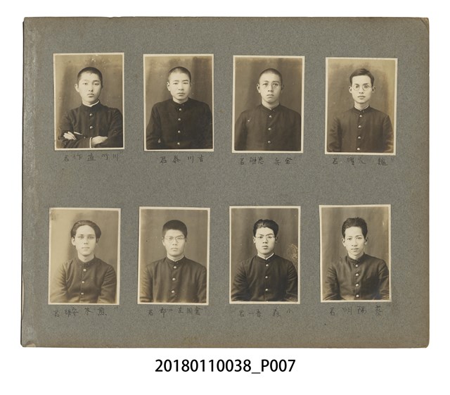 「臺北高等學校」設置「尋常科」及「高等科」,「尋常科」招收臺、日籍的小學畢業生,4年後直升「高等科」。「高等科」修業 3 年,招收「尋常科」直升「高等科」學生,以及招考中學畢業生。「高等科」分設文科及理科,再以主修外語的不同而分為甲、乙兩類,其中乙類以德語為第一外語,英語為第二外語。第二回理乙畢業於1933年,臺籍名人有魏火曜等人。本件內有58張相片加45張獨照相片。內有三澤校長,三澤為第2任校長三澤糾,任期為1925.5-1929.11。