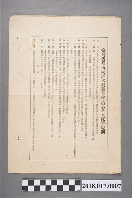 林坤佐臺灣省嘉南大圳水利委員會頂六聯合會員工身元保證書