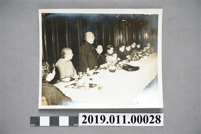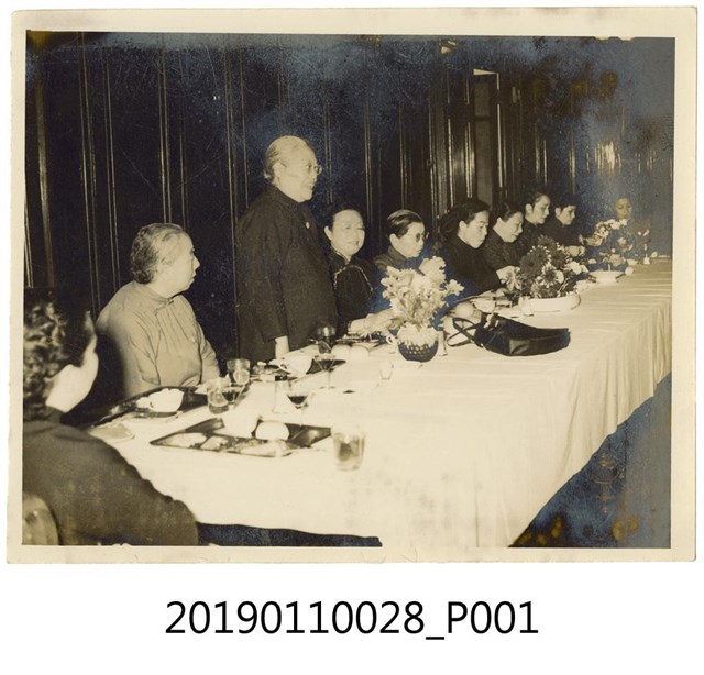 本文物為婦女工作會舉辦園遊會女國大代表致詞影像,為中央社攝。照片中婦女會的幹部們同坐在一張長桌上,由當時身兼國民大會女性代表者致詞。