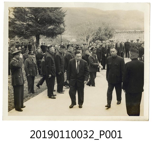 本文物為蔣經國於救國團中留影,其中蔣經國於隊伍正中央,身旁跟隨許多隨扈以及陸軍軍官協助護衛。蔣經國曾在1952年到1973年期間都任職救國團的主任。
