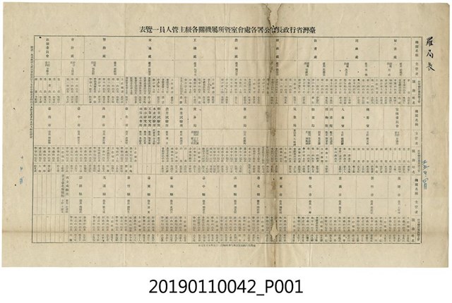 台灣省行政長官公署各處會室暨所屬機關各級主管人員一覽表