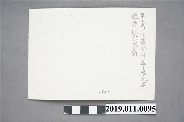 此文物為照片,內容為台中師範學校學生獲得排球比賽優勝與教師合影照片,於西元1939年所拍攝的黑白照片,照片有些地方已有些微褪色。