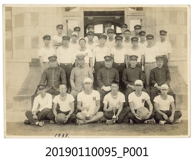 1933年台中師範學校學生獲得排球比賽優勝與教師合影