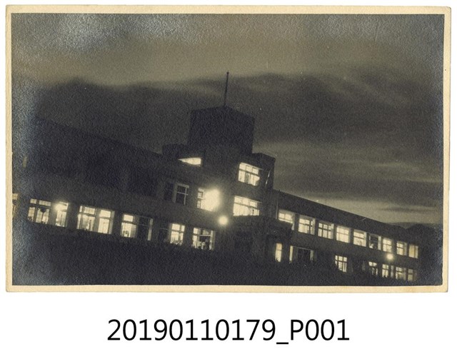 本文物的為日治時期,為一黑白相片,相片無缺損但有些褪色。相片拍攝時間為夜間,為一棟建築物的外觀,雖為夜間但建築物裡仍燈火通明。相片是透過攝影得出來的影像,始於1826年。而臺灣的攝影技術是在日治時期被引進。