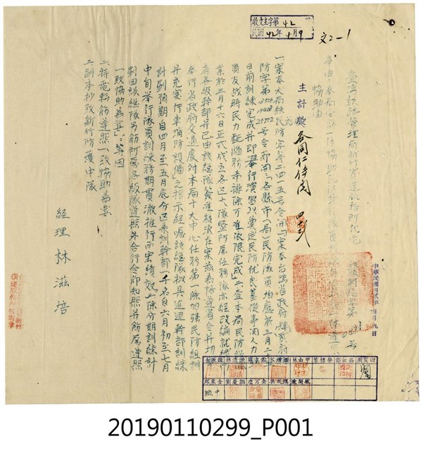 此為民國42年(1953)4月9日台灣鐵路管理局新竹貨運服務處代電,內容為協助民防幹部隊員訓練,計畫自4月至5月底集訓幹部一千名。