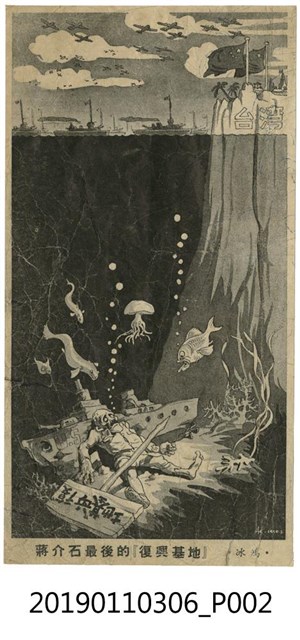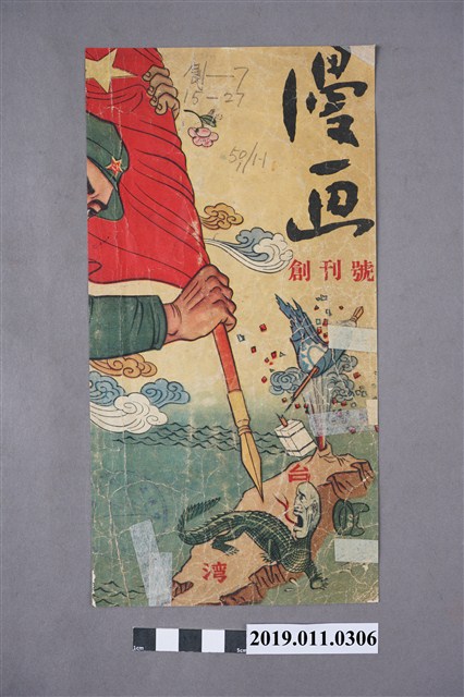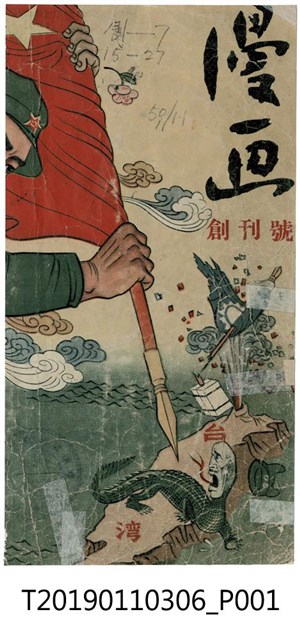 此為《漫畫》創刊號,封面是一條小龍狀的蔣中正盤踞在台灣上,拿著五星旗的人正作勢刺向台灣,背面是一艘沉默的艦艇,牌子上寫的是復興基地,無法判別出版商與時間。