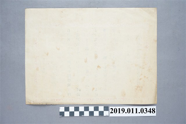 此為大正3年(1914)5月31日沈春生說國語獎狀,就讀於大稻埕公學校,由校長加藤元右衛門頒發,獎賞原由為一個月內多說國語少說台灣話。