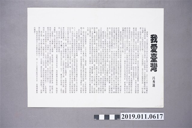 呂秀蓮,文化部臺灣大百科全書,http://nrch.culture.tw/twpedia.aspx?id=28899(瀏覽日期:2020/06/18)。