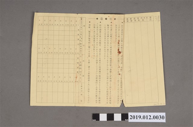 此為昭和17年(1942年)的一紙保險證書,險種為15年期滿養老保險,保險金為235元50錢,要保人為陳福,被保險人為陳江臨,受益人為陳添進。